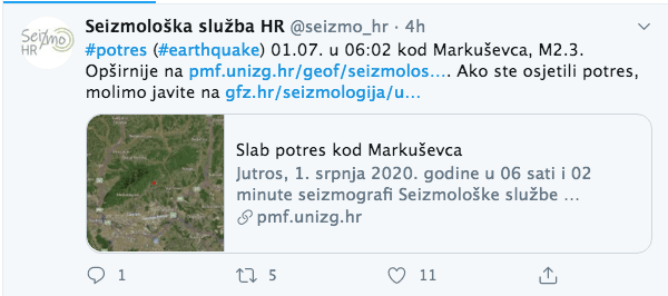 Prema dosadašnjim informacijama potres se osjetio u Zagrebu, kažu seizmolozi.