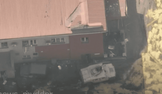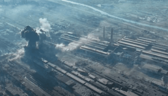 Ruska državna televizija prikazala je kako se iznad tvornice koja je posljednjih tjedana bila izložena masovnom zračnom bombardiranju i granatiranju od strane snaga Vladimira Putina, uzdižu gusti oblaci dima.