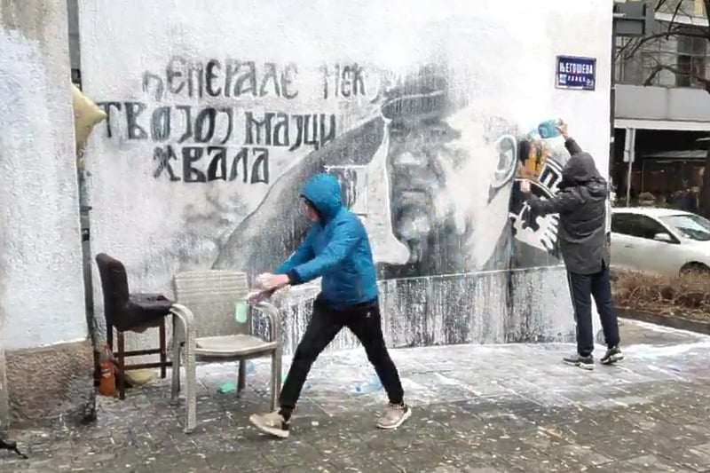 Nekoliko Beograđana okupilo se oko murala ratnog zločinca Ratka Mladića s namjerom da brišući ovaj mural sa zida očiste taj dio Beograda, jer smatraju da tom muralu – pogotovo nakon posljednjih događaja – tu nije mjesto.