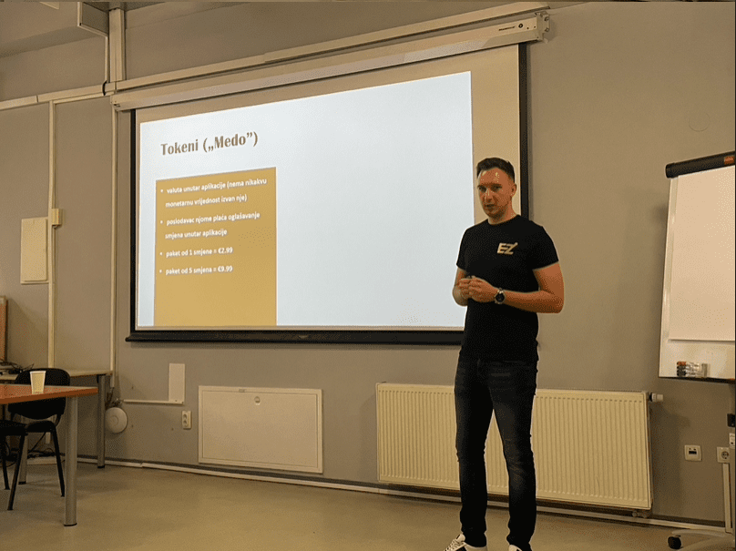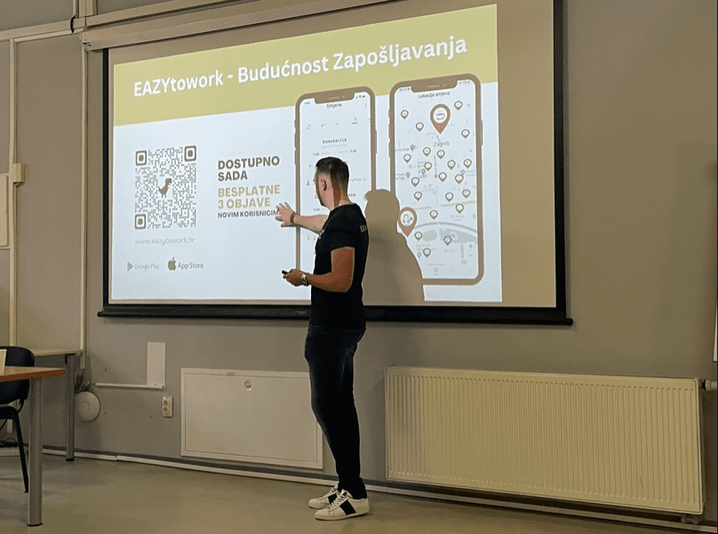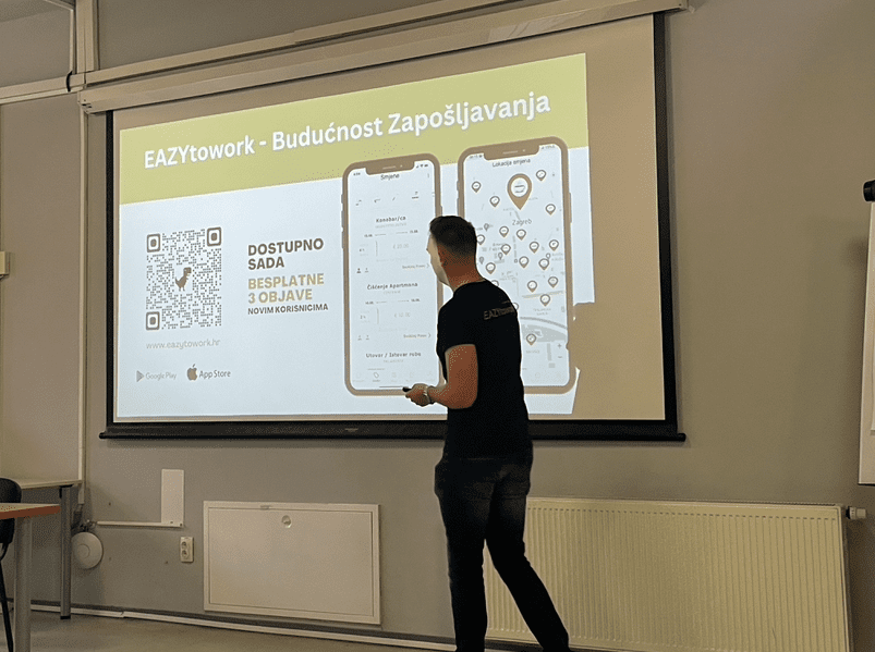 “Aplikacija odgovara više radniku jer je naše poslovanje, da tako kažem, malo zastarjelo. Kroz EAZYtowork jednostavno se može bukirati poslove, kao što se može naručiti taksi. Ljudi koji apliciraju na našu aplikaciju, imat će potpunu kontrolu nad vremenom, ali će moći aplicirati i na posao kada budu mogli i htjeli,” pojasnio je na prezentaciji Dominik.