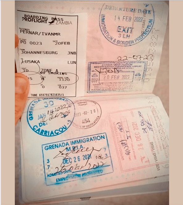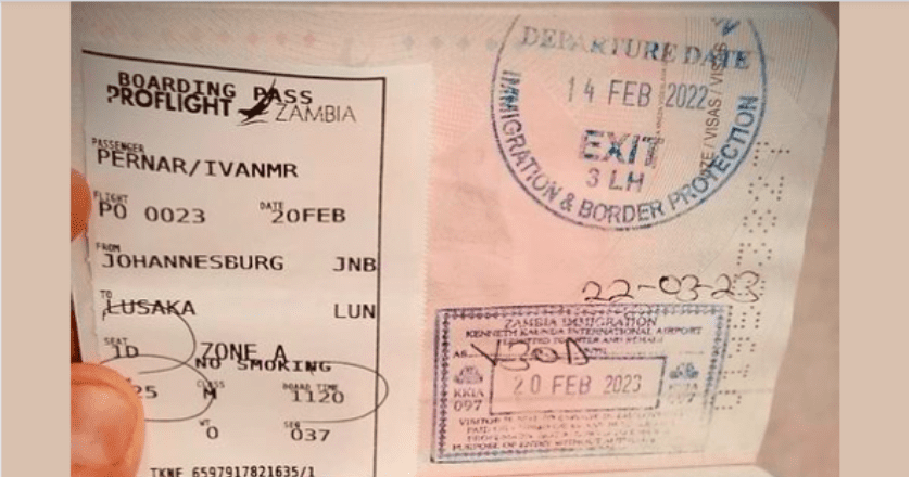 Žigovi u Pernarovoj putovnici govore o njegovom putovanju do Zambije.