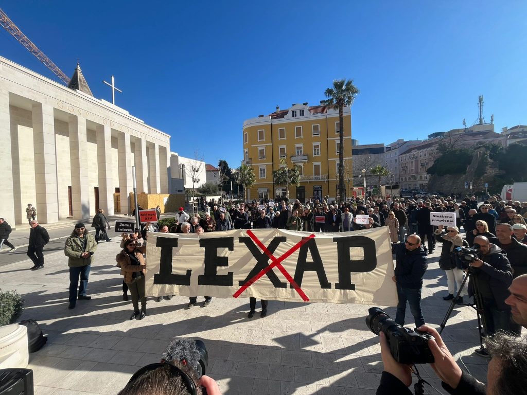 Iako je jučer premijer Plenković napravio korak nazad ustupkom uz novi članak takozvanom LEXAP-u, novinari koji su se danas okupili u velikom broju u Splitu ispred HNK i Zagrebu na Markovom trgu poručili su mu da “nikad neće biti urednik svih hrvatskih medija!”