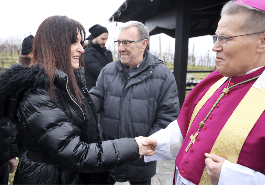 Zamjenik župana Osječko-baranjske županije Josip Miletić, saborska zastupnica Nataša Tramišak, saborski zastupnik Goran Ivanović i predsjednica Skupštine Osječko-baranjske županije Ivana Bagarić danas su nazočili posveti vinograda i blagoslovu mladog vina u Podrumima Đakovačko-osječke nadbiskupije u Trnavi, koje je predvodio nadbiskup metropolit Đuro Hranić.
