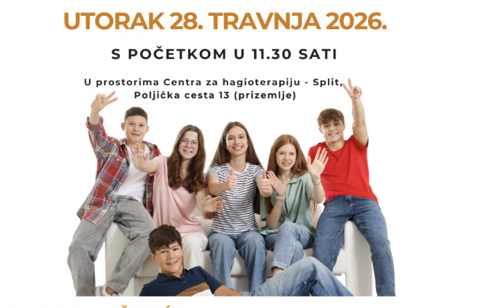 Centar za hagioterapiju Split, u sklopu projekta Grada Splita i Splitsko-dalmatinske županije, organizira okrugli stol pod geslom „Mladi i vrijednosti”, koji će se održati u utorak, 28. travnja 2026. godine s početkom u 11.30 sati.