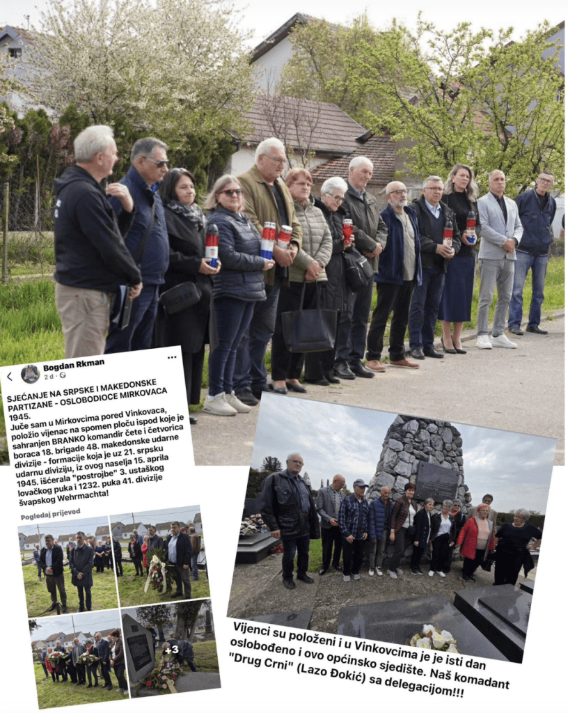 Na Kumanovoj ciglani, uz sudjelovanje gradske vlasti, udruga i Ministarstva branitelja, položeni su vijenci za nevine žrtve ubijene 1945. godine – ljude koji su stradali bez suda, bez presude i bez mogućnosti obrane. Poruka takve komemoracije nedvosmislena je – pijetet prema žrtvama, težnja za istinom i potreba da se ne zaboravi.No, istovremeno, na drugim lokacijama – ne samo u Mirkovcima, nego i unutar samih Vinkovaca – odvija se posve drugačiji narativ. Tamo se vijenci polažu za one koji se nazivaju „osloboditeljima“, uključujući zapovjednike i postrojbe čije se djelovanje u kolektivnoj memoriji većine građana veže upravo uz stradanja, a ne oslobođenje. Takva paralelna stvarnost ne ostavlja prostor za neutralnost – ona izravno otvara pitanje smisla zajedničkog sjećanja.