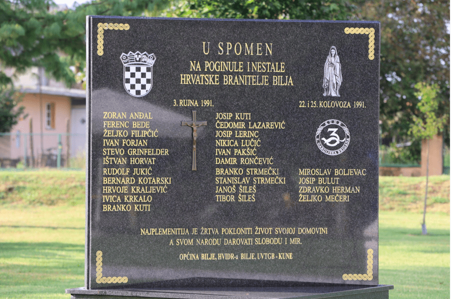 Žitelji naselja i Općine Bilja tako se s tugom i ponosom iskazali počast poginulim i nestalim braniteljima, a za Dan sjećanja odabran je 3. rujna jer je tog dana 1991. godine u obrani Bilja, zadnjeg neokupiranog naselja u Baranji, od napada oklopnih jedinica tzv. JNA i pobunjenih Srba poginulo 11 hrvatskih branitelja. Još je 13 zarobljeno, a uz zvjerska mučenja ubijeno je 9 branitelja. Njihova tijela naknadno su pronađena i ekshumirana na raznim stratištima, no za jednog se ni danas ne zna sudbina. Tri branitelja su naknadno razmijenjena.