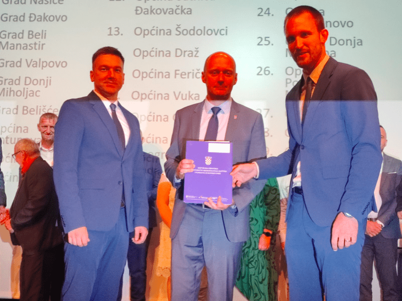 S područja Osječko-baranjske županije ugovore su primili predstavnici općina Bizovac (izgradnja pristupne ceste do groblja u naselju Habjanovci), Darda (dječje igralište u naselju Mece), Strizivojna (izgradnja pristupne površine za dječji vrtić i ostale javne građevine u Strizivojni), Satnica Đakovačka (rekonstrukcija kolnika odvojka Ulice kralja Tomislava), Marijanci (1. faza rekonstrukcije nogostupa), Šodolovci (modernizacija i poboljšanje energetske učinkovitosti javne rasvjete), Draž (izgradnja Doma kulture u naselju Draž), Feričanci (adaptacija prostora dječjeg vrtića Mali princ u Feričancima), Vuka (izgradnja nadstrešnice i parkirališta u sklopu društvenog doma), Gorjani (izgradnja javne rasvjete u naselju Tomašanci), Kneževi Vinogradi (izgradnja zgrade javne namjene – upravna zgrada općine – 2. faza), Vladislavci (adaptacija pristupnih površina javnim objektima i prostoru za registraciju poljoprivredne mehanizacije u Dopsinu), Trnava (izgradnja javne rasvjete – faza 4.), Semeljci (izgradnja Trga – 3. faza), Erdut (uređenje pješačkih staza), Ernestinovo (sanacija pješačkih staza u Frankopanskoj ulici u Ernestinovu), Donja Motičina (priključak zgrade nogometnog kluba na infrastrukturu), Podravska Moslavina (izgradnja kanalizacijske mreže – faza 2023.), Petrijevci (rekonstrukcija i opremanje Dječjeg vrtića), Viljevo (izgradnja centra u Viljevu – faza b – ambulanta sa ljekarnom i stomatološkom ordinacijom), Čeminac (adaptacija javne rasvjete), Magadenovac (dogradnja svlačionice u Beničancima), Đurđenovac (izvođenje radova izgradnje pješačke staze u Ulici Matije Gupca u naselju Pribiševci), Viškovci (izgradnja pješačke staze u Ulici Stjepana Radića u naselju Forkuševci – faza I.), Jagodnjak (javna rasvjeta u Bolmanu – faza 2.), Čepin (rekonstrukcija dječjeg igrališta u Čepinu), Popovac (sanacija i rekonstrukcija nerazvrstanih cesta), Punitovci (sanacija kolnog ulaza i parkirališta ispred mjesnog groblja u Josipovcu Punitovačkom) i Antunovac (sanacija nerazvrstane ceste u Ulici Tina Ujevića).